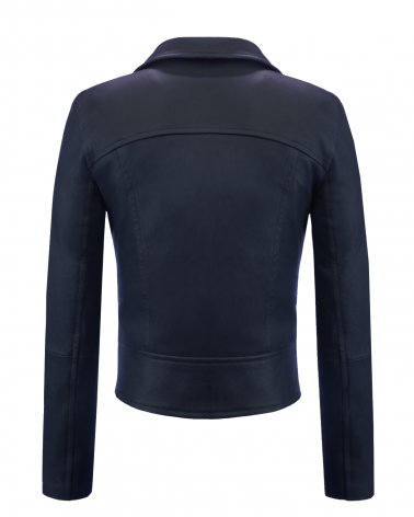 Ramoneska damska Maja marki Tomskór to elegancka, skórzana kurtka, wykonana z wysokogatunkowej skóry jagnięcej, która zapewnia miękkość i trwałość. Model w granatowym kolorze łączy klasyczny fason z luksusowymi detalami – złote zamki i napy dodają charakteru, a asymetryczny zamek oraz wykładany kołnierz nadają jej wyjątkowego stylu.