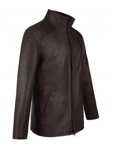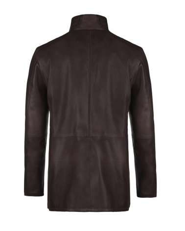 Długa Kurtka Skórzana Męska Gabryś Ciemny Brąz