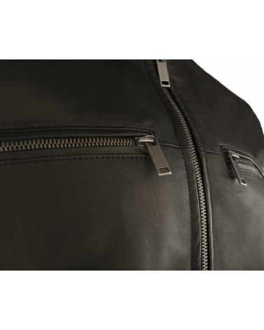 Stanley II to kurtka uszyta ręcznie z najwyższej jakości skóry jagnięcej, która zachwyca swoją miękkością i naturalnym charakterem. Jej ponadczasowy styl, luksus oraz funkcjonalność sprawia, że jest ona nieodłącznym elementem garderoby. To propozycja dla mężczyzny, który nie potrzebuje, by robić wrażenie. Czarny kolor kurtki wpadający w lekko brązowe tony z czasem przeciera się, nadając jej unikalny, szlachetny charakter i efekt naturalnej patyny, który podkreśla indywidualny styl właściciela. Minimalistyczna forma, dopracowane detale i klasyczna czerń sprawiają, że Stanley II odnajduje się w każdej sytuacji, od codziennych wyjść po bardziej eleganckie okazje. Posiada łącznie aż 7 kieszeni, 3 wewnętrzne na wysokości klatki piersiowej, gdzie dwie kieszonki są wsuwane, a jedna zamykana na zamek. Cztery głębokie zewnętrzne kieszenie są zamykane na zamek, których odcień ciemnego srebra elegancko komponuje się z czarną skórą i podkreśla nowoczesny charakter kurtki. Dzięki wysokiej jakości materiałowi oraz starannemu wykonaniu, model Stanley II posłuży przez wiele sezonów.